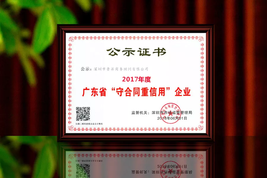繽紛夏日,總有不斷的驚喜到來。近期,深圳市市場監(jiān)督管理局對2017年度廣東省“守合同重信用”企業(yè)進(jìn)行公示,晉昇國際榮獲2017年度廣東省“守合同重信用”企業(yè),并獲頒榮譽牌匾和榮譽證書。這是令人欣喜和鼓舞人心的時刻,晉昇國際團(tuán)隊將繼續(xù)砥礪前行,為廣大客戶創(chuàng)造價值!