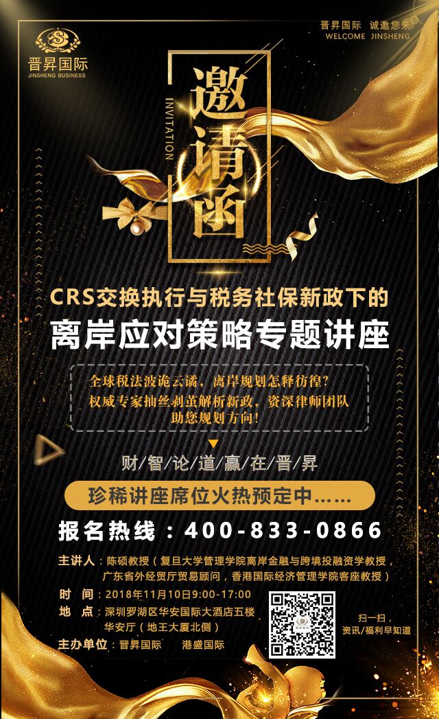 《CRS交換執(zhí)行與稅務(wù)社保新政下的離岸應(yīng)對(duì)策略》專題講座,邀請(qǐng)權(quán)威離岸專家、復(fù)旦大學(xué)管理學(xué)院“離岸金融與跨境投融資”課程導(dǎo)師