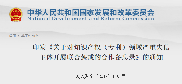 *以上嚴(yán)重失信行為的認(rèn)定依照《國家知識(shí)產(chǎn)權(quán)局關(guān)于開展知識(shí)產(chǎn)權(quán)系統(tǒng)社會(huì)信用體系建設(shè)工作若干事項(xiàng)的通知》(國知發(fā)管字〔2016〕3號(hào))及其他相關(guān)文件確定。