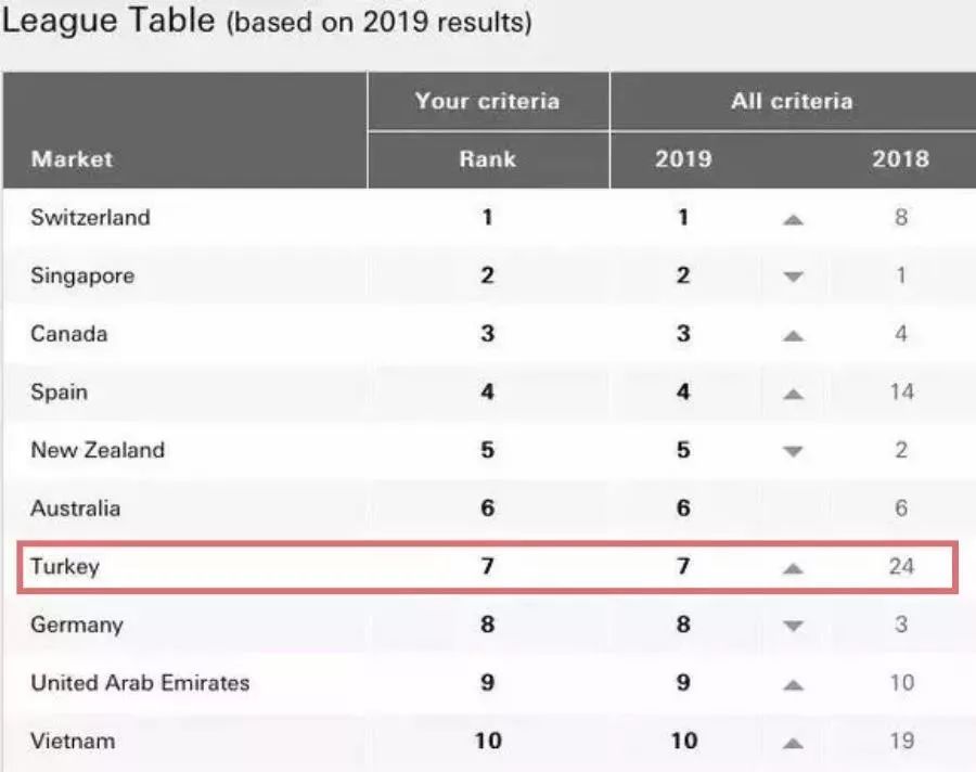 近日匯豐銀行發(fā)布了《2019年全球移居報(bào)告》,土耳其不僅力壓德國,更是從去年的第24位上升到第7位,成為世界上最受歡迎的移居地之一。