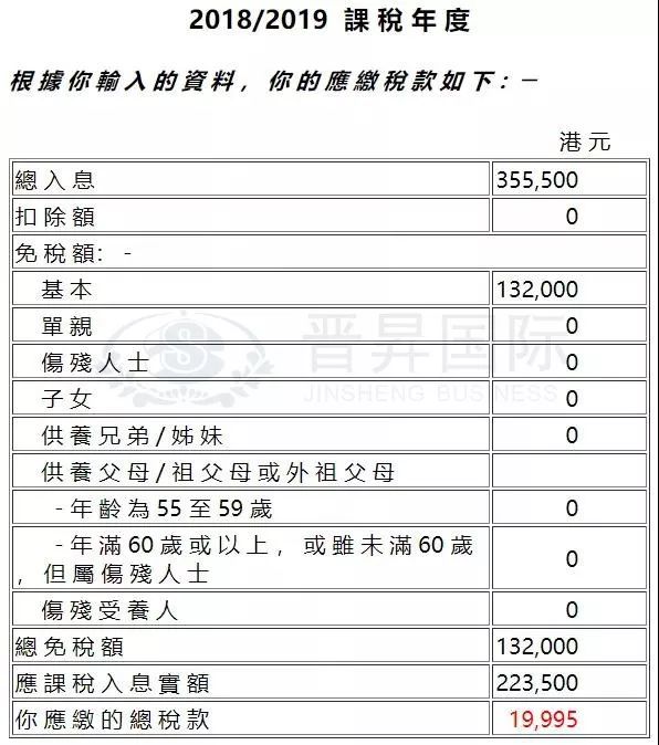 請咨詢港盛國際顧問為您計算建議措施實施后你應(yīng)繳的2018/19年度薪俸稅及個人入息課稅稅款。