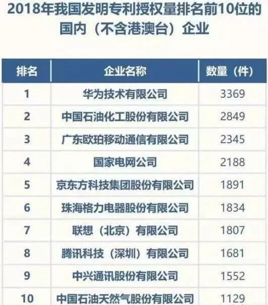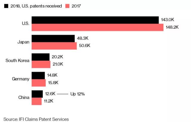 從全球國家總體來看,美國專利局商標局去年授予的專利數(shù)量下降了3.5%,除中國外,其他主要國家獲得的專利數(shù)量都低于上年。在2018美國專利排行榜中,中國專利數(shù)量增一成,排全球第五。