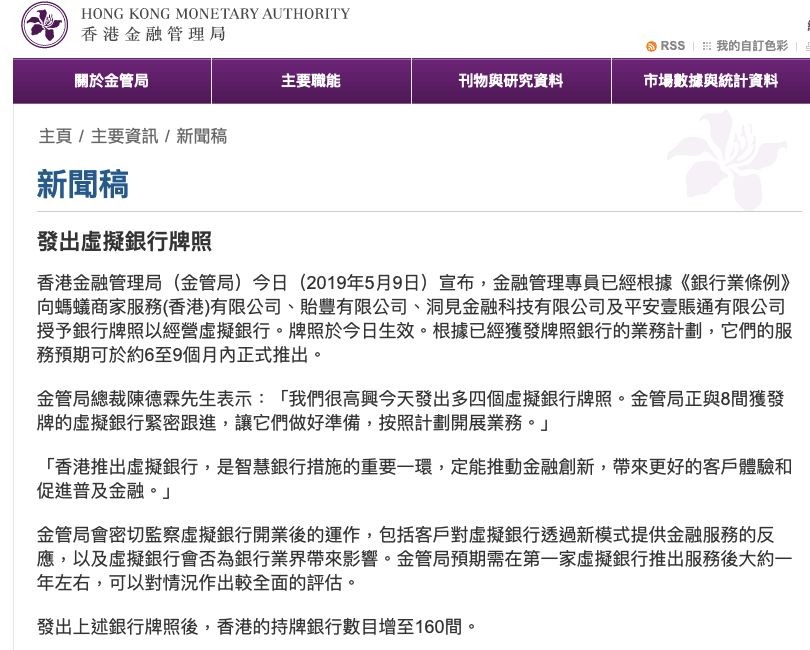 2000年,中國(guó)香港金管局曾首次發(fā)布《虛擬銀行的認(rèn)可》指引;