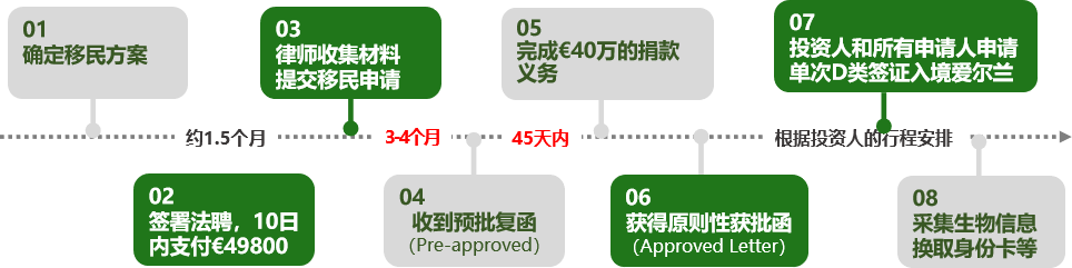 個人捐贈50萬歐元至愛爾蘭公共設(shè)施(比如教育、藝術(shù)、公益項目等)。如果團體捐贈,捐款的金額可以降低至40萬歐元。捐款方式雖然無法獲得回報,但是它的優(yōu)勢在于獲批速度最快,而且所要求的材料也相當簡單。